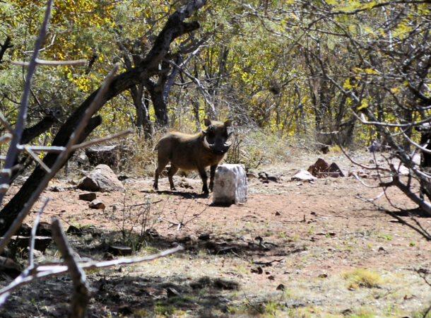 This is an easy 5 km route for the whole family that combines a 2-track farm road with a bush trail. Along the way you will find directions to the viewpoint where you can rest for a short while and look down over one of the lodges in the area. You may also spot some game if you are lucky. You will pass the Africa rock that resembles the African continent especially when it is filled with rain water. There is a water point along the way.
